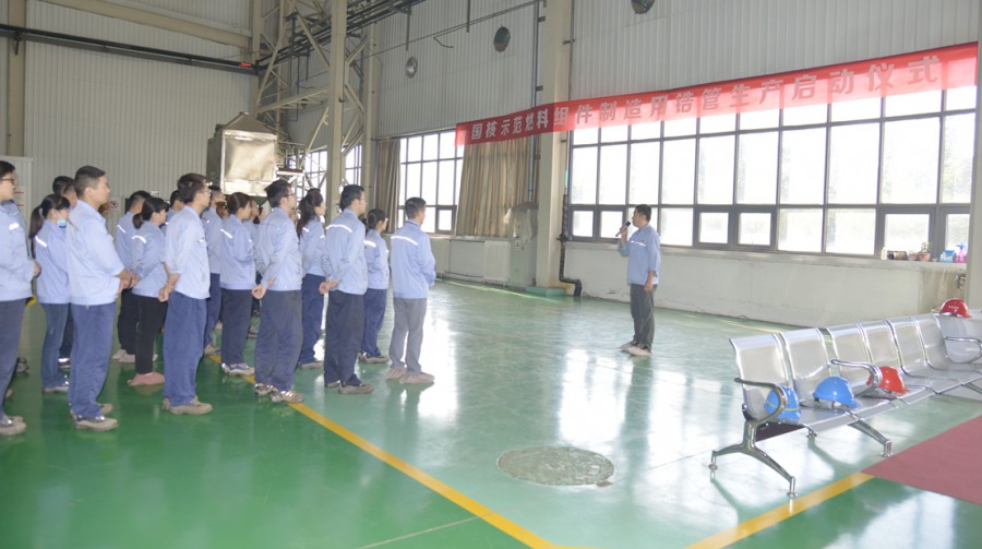啟動(dòng)儀式上,員工代表分別進(jìn)行表態(tài)發(fā)言。劉敏進(jìn)行產(chǎn)前動(dòng)員,要求公司全體員工一定高度重視、抓住機(jī)遇、嚴(yán)控過(guò)程、保質(zhì)保量,圓滿完成首爐鋯材生產(chǎn)。生技部宣讀生產(chǎn)啟動(dòng)令,國(guó)核示范電站首爐燃料組件制造用鋯管生產(chǎn)正式啟動(dòng)。