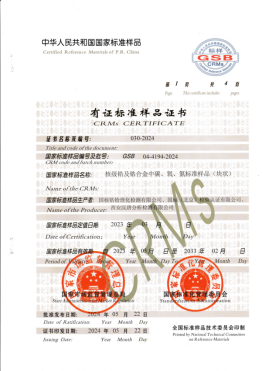 6月14日,公司收到由國(guó)家市場(chǎng)監(jiān)督管理總局和國(guó)家標(biāo)準(zhǔn)化管理委員會(huì)簽發(fā)的2項(xiàng)標(biāo)準(zhǔn)樣品證書。該標(biāo)準(zhǔn)樣品由國(guó)核鋯業(yè)理化檢測(cè)牽頭研制,為鉿中鋯、鐵、鉻成分標(biāo)準(zhǔn)樣品(屑狀)(GSB 04-4200-2024)和核級(jí)鋯及鋯合金中碳、氧、氮標(biāo)準(zhǔn)樣品(塊狀)(GSB 04-4194-2024)。