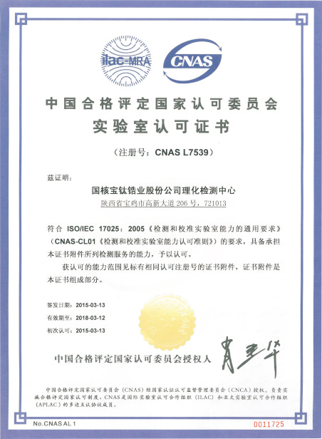 國核鋯業(yè)獲得“中國合格評定國家認(rèn)可委員會(CNAS)實(shí)驗(yàn)室認(rèn)可證書”