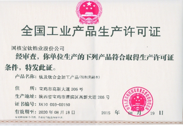 國核鋯業(yè)鈦及鈦合金加工產(chǎn)品生產(chǎn)許可資格